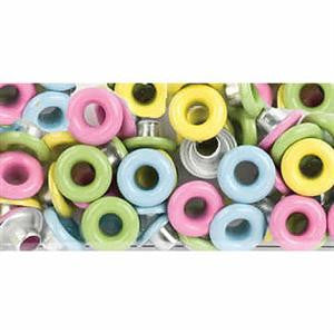 Paquete con 48 Eyelets de colores Amarillo, Rosa, Azul y Verde en tonos pasteles.