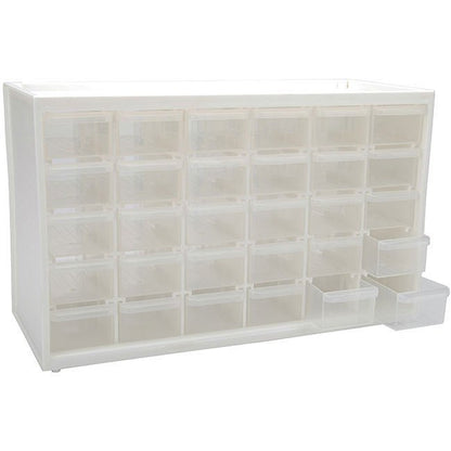- Un organizador con 30 cajones de 3.8 x 5.7 cm aproximadamente cada cajón.