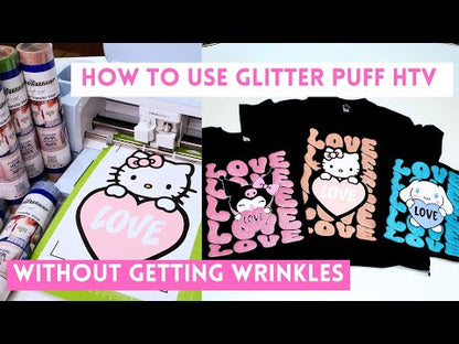 Glitter Puff es un vinil de transferencia térmica de alta temperatura que brilla. El material de brillo también se puede utilizar como contorno o corte. El vinil de transferencia térmica Glitter Puff tiene un acabado brillante.