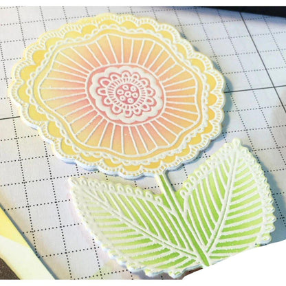 Con una tinta de secado lento o híbrida, humedece y estampa tu sello favorito, después cubre con tus polvos de embossing, no escatimes, permite que se cubra todo muy bien. Estos se pegarán únicamente a la tinta, después sacude todo el restante sobre una charola Tray Mate. Y ahora con una pistola de aire caliente (heat gun o heat tool), funde los polvos y listo, obtienes un acabado realzado, muy parecido a la serigrafía.