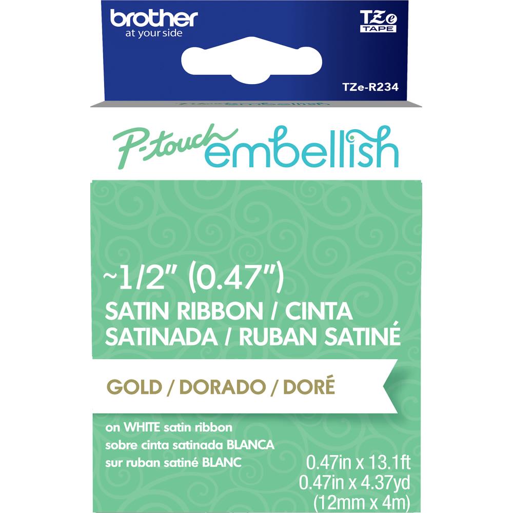 P-Touch Embellish Satin Ribbon Gold on White / Listón Satinado Dorado sobre Blanco