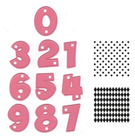 Party Numbers Die & Stamp / Set de Suajes y Sellos Números de Fiesta