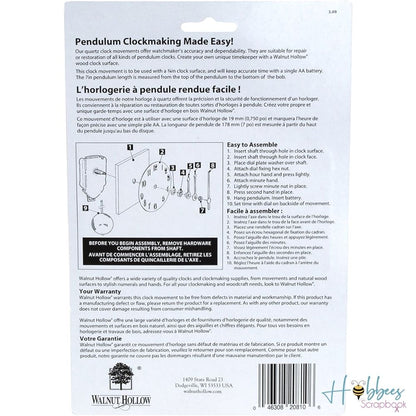 Este reloj con movimiento de cuarzo ofrece la precisión y confiabilidad de un relojero. ¡Úsalo para reparar o restaurar todo tipo de relojes de péndulo o crea el tuyo propio personalizado! Para usar con superficies de 19 mm (3/4 de pulgada).