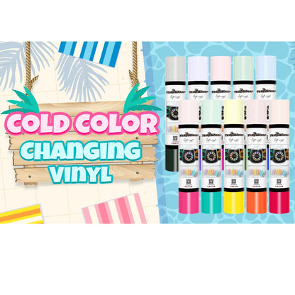 Se creativo con este vinil que cambia de color en frío para crear un proyecto de manualidades único y sorprendente. Cuando se enfría por debajo de los 15 °C (59 °F), el color cambiará de blanco /al color indicado en el lado opuesto y volverá a su aspecto original cuando la temperatura aumente.