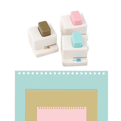 - 3 cabezales distintos (dos con agujeros redondos y uno con agujeros cuadrados) para troquelar páginas que después podrás insertar en tus cuadernos de espiral sin necesidad de desmontarlos