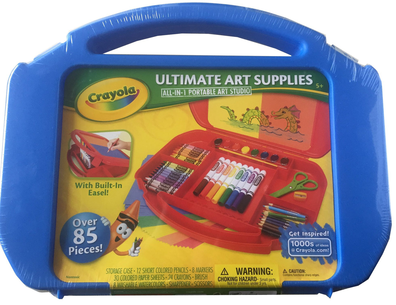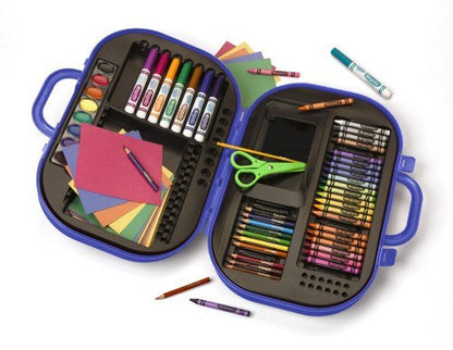 Crayola kit portátil de 85 piezas. Trae bandejas compartidas para mantener los materiales de arte organizados. Almacenamiento de papel debajo de la bandeja.