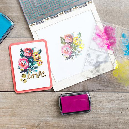 - Estampar sellos tono sobre tono. Gracias a sus guías, es muy fácil hacer que el diseño coincida para las distintas capas del entintado.