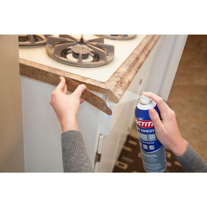 HENKEL-Loctite: adhesivo profesional en aerosol de alto rendimiento. Este adhesivo en aerosol une madera, metal, vidrio, alfombras y plásticos. Ofrece una unión de peso pesado que es resistente al agua y al calor, y se recomienda su uso en laminado, molduras, aplicaciones marinas, tapicería, alfombras, conversiones de furgonetas o autocaravanas, placas de protección y señalización. Hecho en EE.UU.