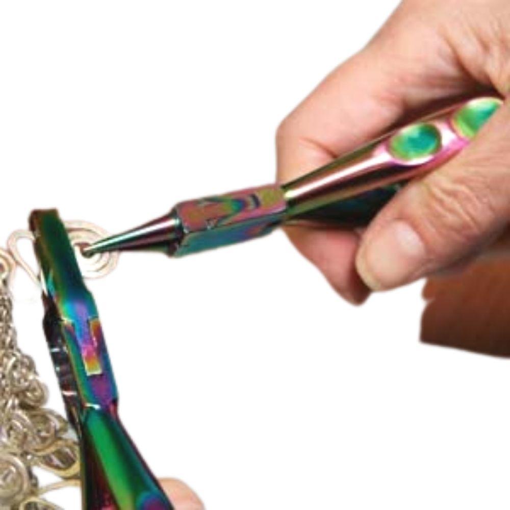 El estilo y la función se combinan en esta herramienta de la serie Chroma de The BeadSmith. Estos alicates están hechos de acero inoxidable endurecido con un recubrimiento de titanio arcoíris para una apariencia única y espectacular.