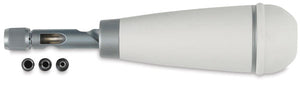 Contiene 3 puntas de diferentes medidas 5/32", 3/32" y 1/16" (pulgadas) éstas se guardan en el mango para mayor comodidad.