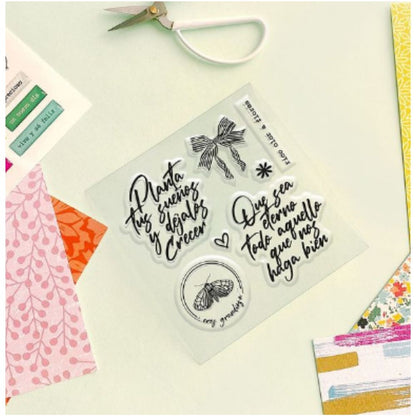 Sellos de fotopolímero transparente, son ideales para completar la colección y crear con ellos frases y texturas que adornan nuestros proyectos.