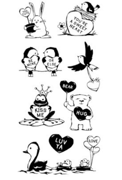 Planilla de Sellos Importados hechos de polímero transparente autoadheribles que se utilizan con la ayuda de un bloque de acrílico (**se vende por separado).