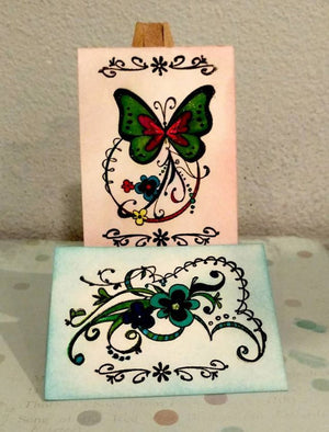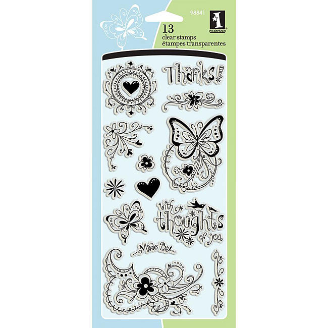 Planilla de Sellos Importados hechos de polímero transparente autoadheribles que se utilizan con la ayuda de un bloque de acrílico (**se vende por separado).