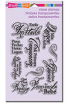 Planilla de Sellos Importados hechos de polímero transparente autoadheribles que se utilizan con la ayuda de un bloque de acrílico (**se vende por separado).