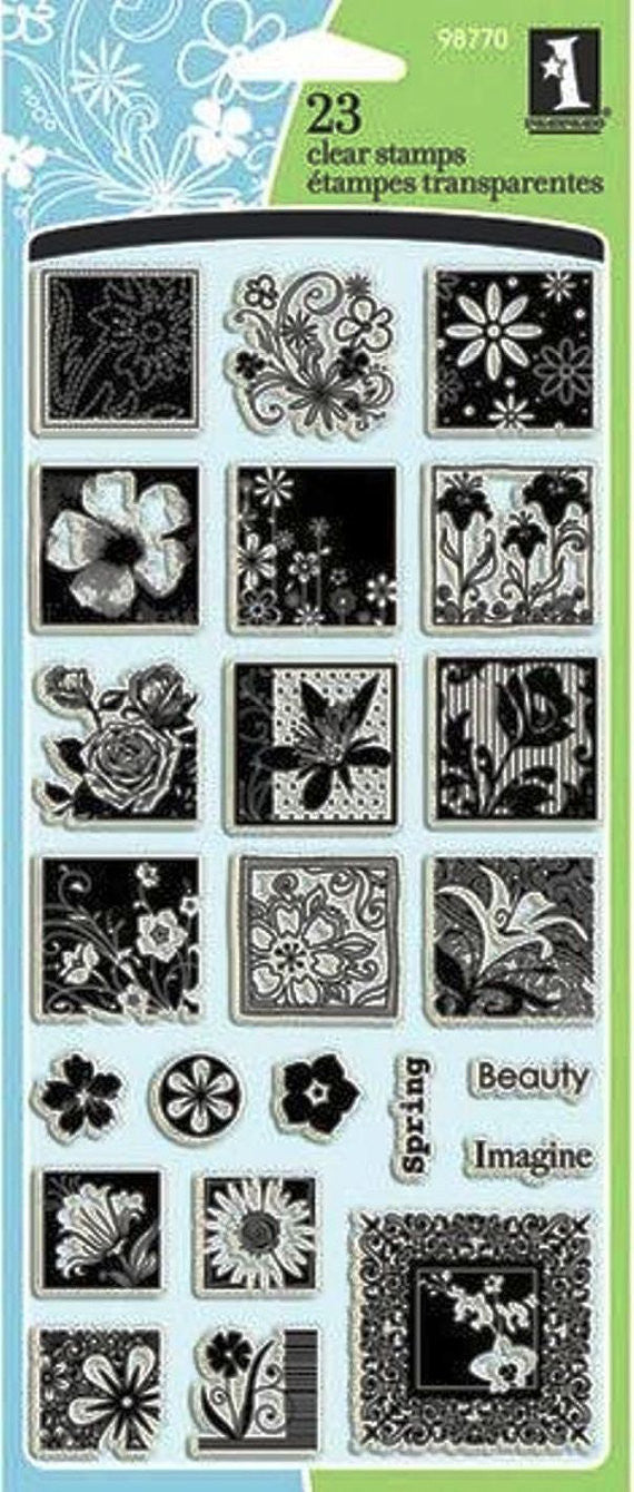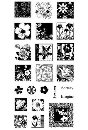 Planilla de Sellos Importados hechos de polímero transparente autoadheribles que se utilizan con la ayuda de un bloque de acrílico (**se vende por separado).
