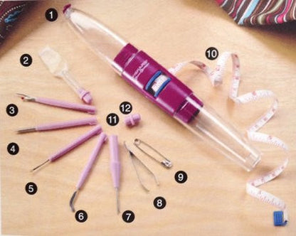 Herramienta multiusos para costura Sew Taxi ofrece una amplia gama de herramientas para costura en un estuche compacto, ideal para la bolsa, equipaje de mano, caja de costura. La cubierta transparente del estuche, es resistente a los golpes además de mantener todas las herramientas organizadas y protegidas.
