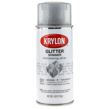 Shimmering Silver Krylon Glitter Shimmer Spray ofrece un acabado reluciente que agrega brillo instantáneo a las manualidades, la ropa, los estampados florales y mucho más.