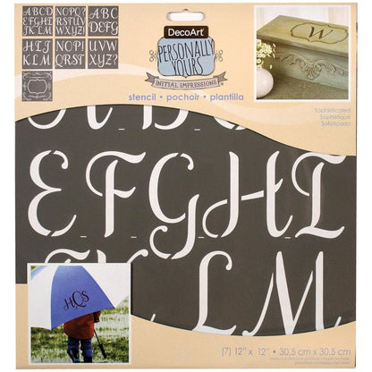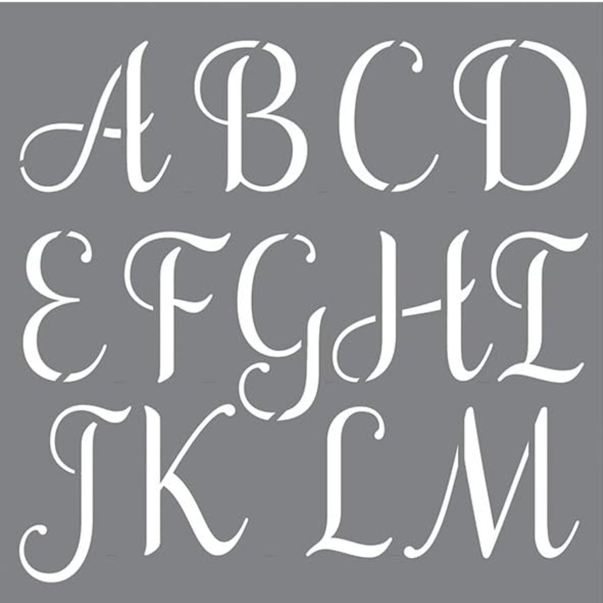 - 6 Esténciles de letras cursivas que mide 30.5 x 30.5 cm, las letras miden aprox. entre 7.62 y 10 cm dependiendo la letra.