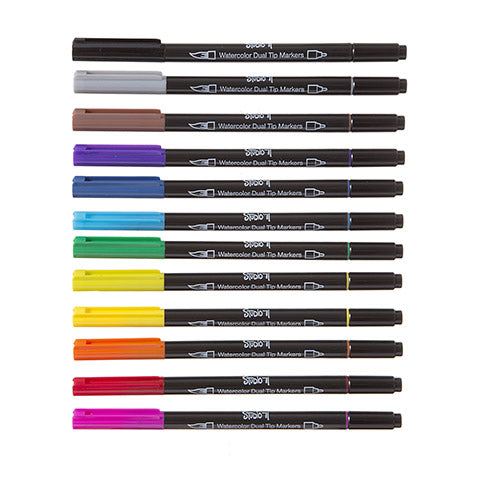Este conjunto cuenta con marcadores delgados que se adaptan cómodamente a su mano para un control de precisión, y tienen tapas seguras que muestran la tinta de color a base de agua para una rápida identificación. El diseño de doble punta de estos marcadores de acuarela es perfecto para hacer líneas finas y gruesas con el mismo suministro de arte práctico.
