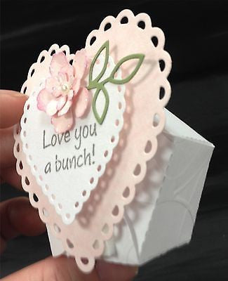 Un suaje de cajita de estrella que armada mide 1.25 x 1.25 x 2.5 pulgadas aprox.