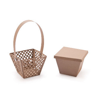 1. 7 suajes para armar la cesta y la caja ya armada miden 2.5 x 2.5 x 2 pulgadas aprox