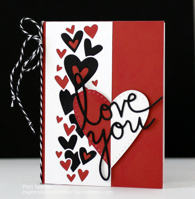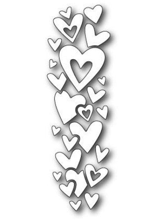 Un suaje de corazones en cascadas que mide 4.1 cm x 13.8 cm aprox.