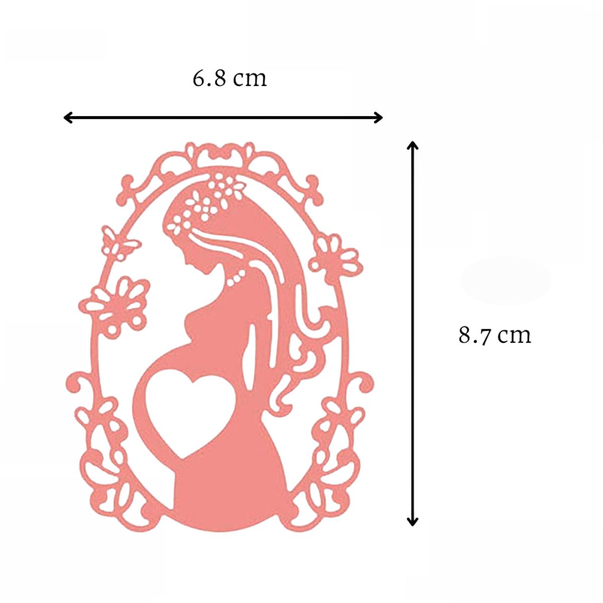 - Un suaje de embarazada que mide 8.7 cm de alto x 6.8 cm de ancho aprox.