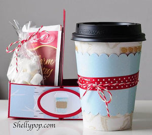 1. Un suaje de vaso que armada mide 3.4 x 4.9 pulgadas aprox. y 5 suajes para decorar el vaso.