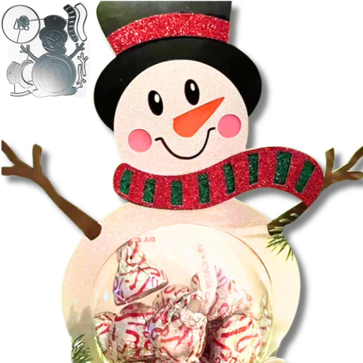 - 9 Suajes o troqueles para hacer un dulcero de Muñeco de nieve que mide 18 cm de altura x 15 cm de ancho. El círculo mide 8cm.