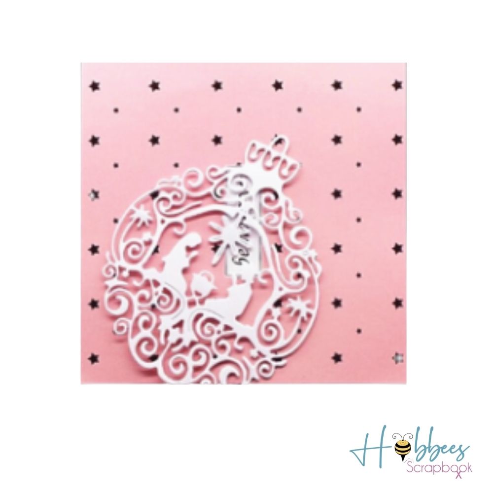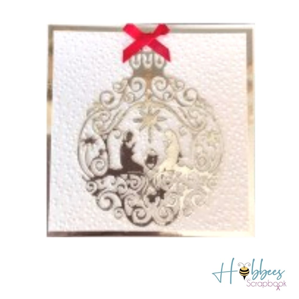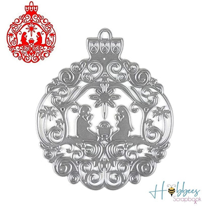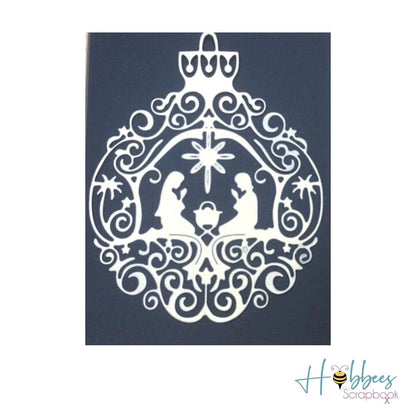 - 1 Suaje de esfera decorada con nacimeinto. Medidas de 10.3 x 13.8 cm.