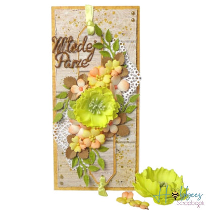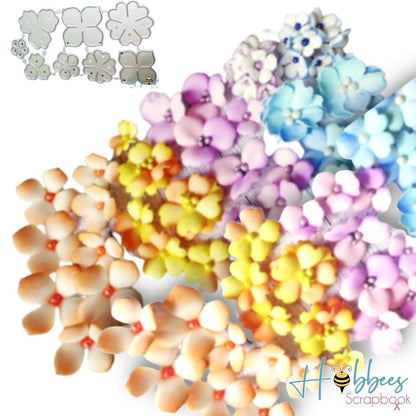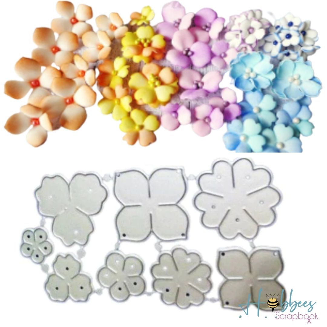 - 8 Suaje de flor que miden 1.1 cm, 2.1 cm, 2.5 cm, 3.1 cm, 2.3 cm, 3.4 cm, 2.4 cm y 3 cm.