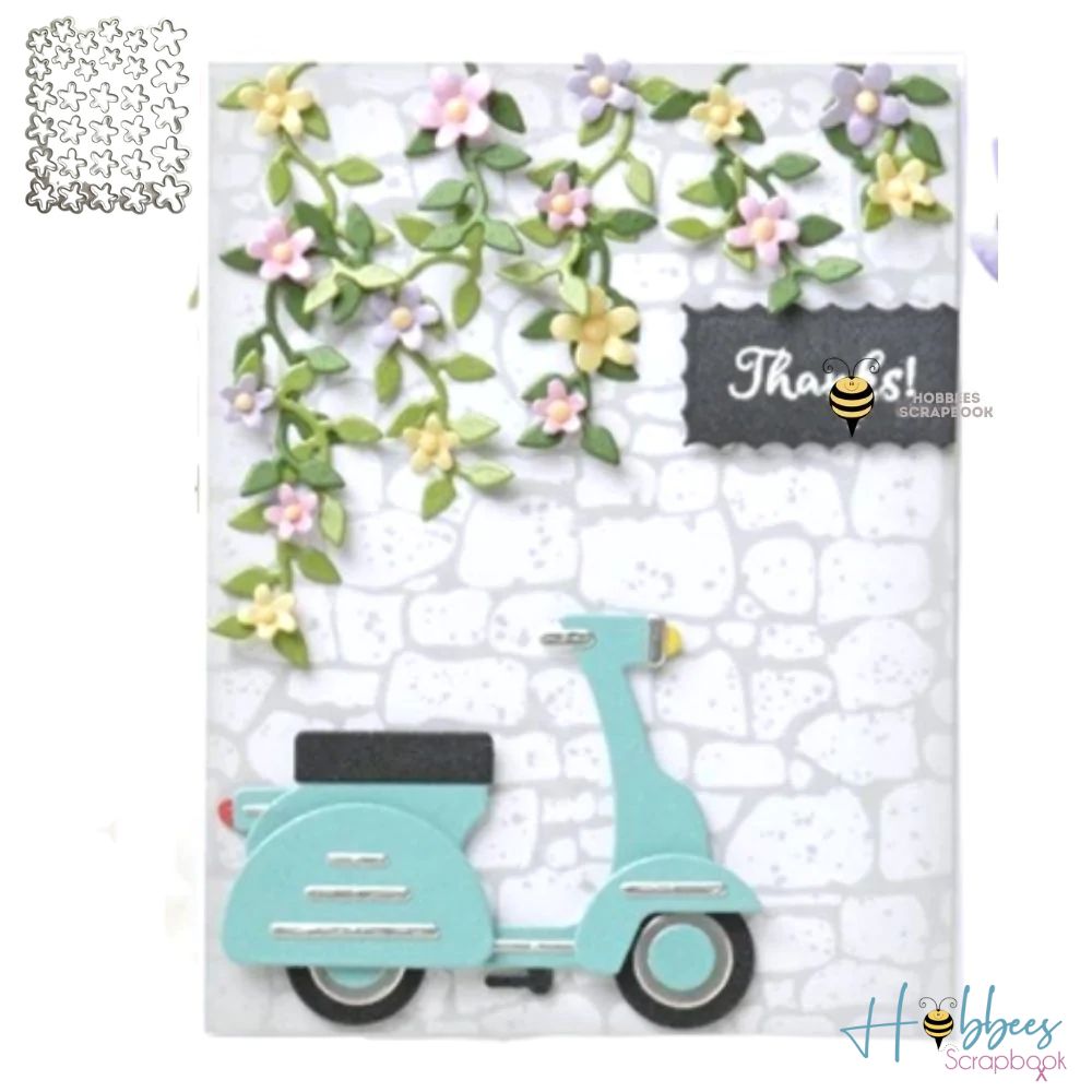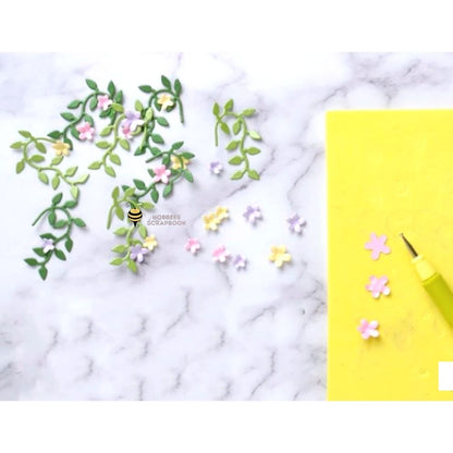 - 1 suaje que mide completo 7.5 x 6 cm con florecitas que miden: 1.5, 1, 1.2, 1.3 cm