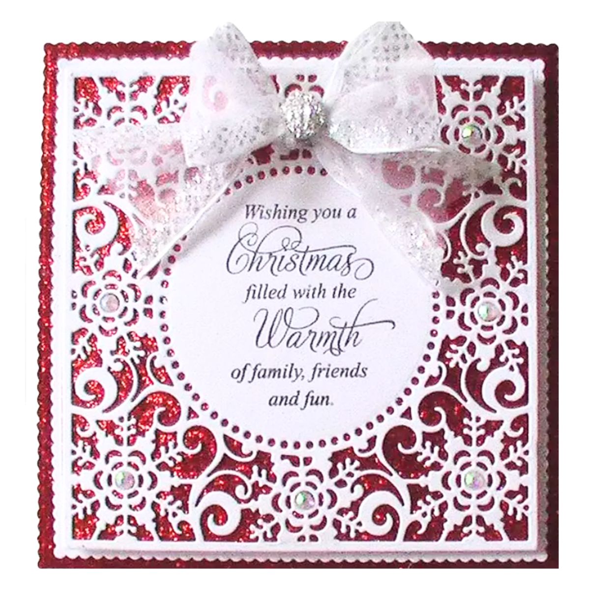 • 1 Suaje de Fondo con copos de nieve que mide 11.3 x 11.3 cm.