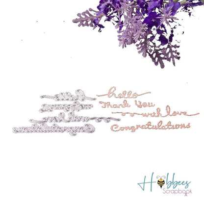 - 4 Suaje de frases: Congratulations, Hello, Thank You y With love.
