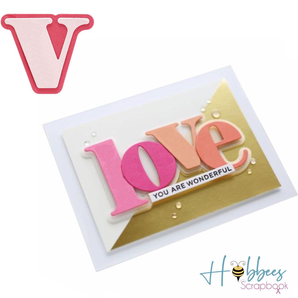• 1 Suaje de letra v, mide 5.1 x 4.3 cm