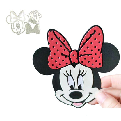 La base del suaje mide 4 x 3.5 cm, la carita de Mimmie mide 5.5 x 6.8 cm, y el moño mide 5.3 x 3 cm.