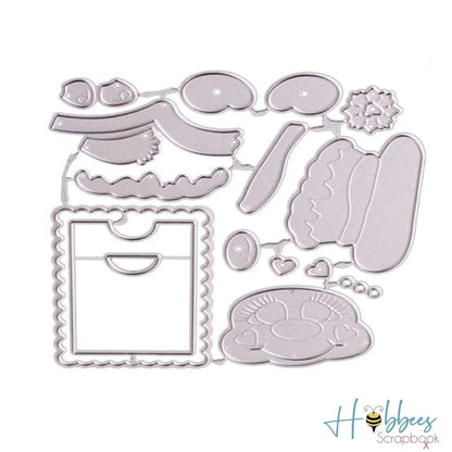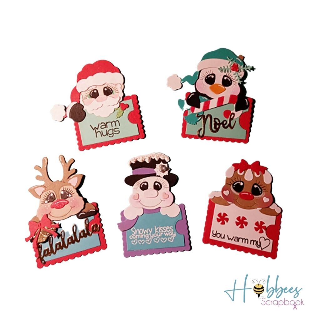 - 15 Suaje para armar un Santa Claus y su etiqueta. Medidas de la cara 4.2 x 3 cm, y la etiqueta mide 4.3 x 6 cm aprox.