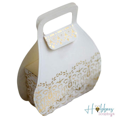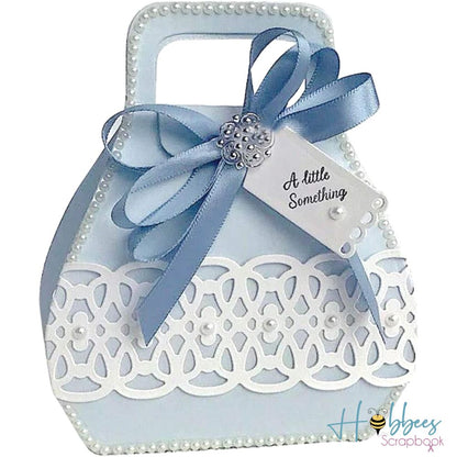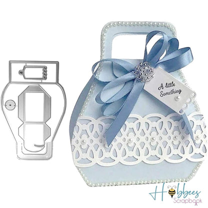 La medida del suaje es 10.7 x 16 cm, la medida de la bolsa es 10.7 x 12.7 cm. El tag mide 2.2 x 4.5 cm, la base de la bolsa mide 3.5 x 7.9 cm.