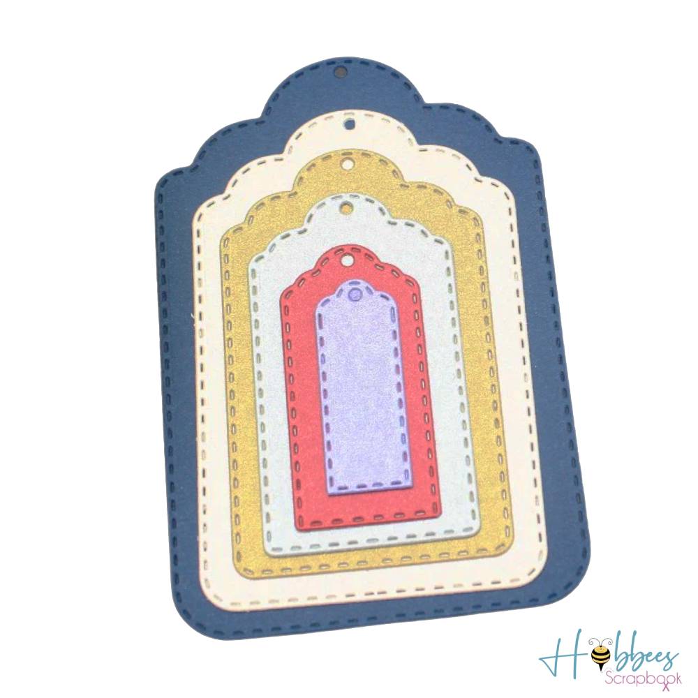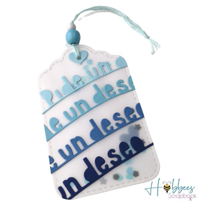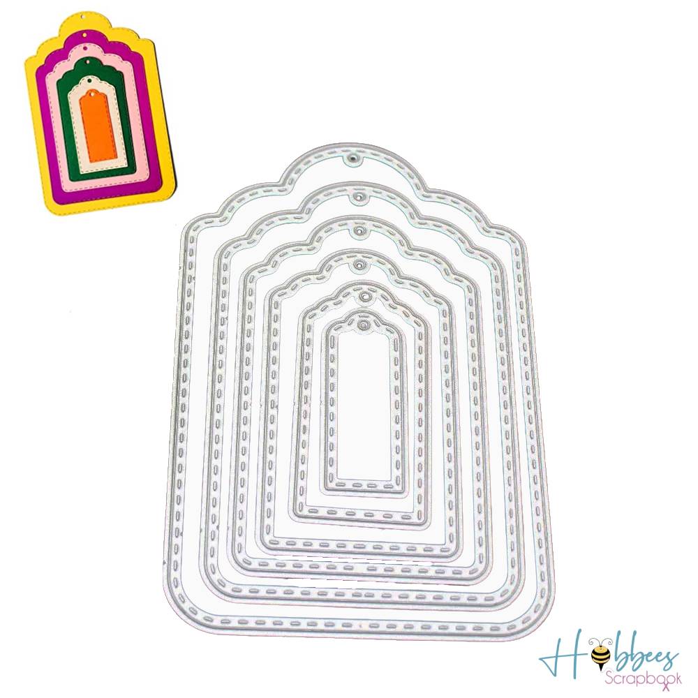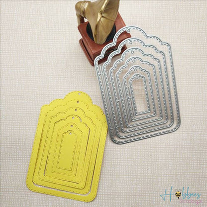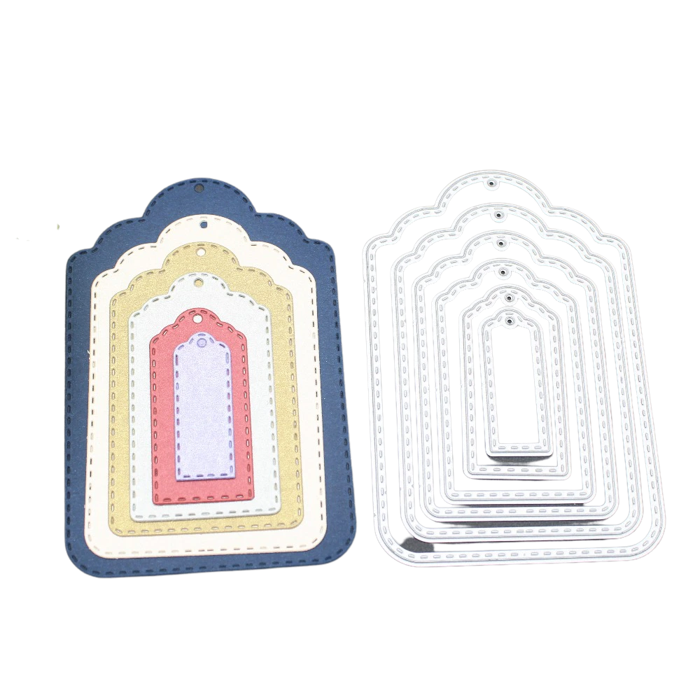 - 6Â Suajes de etiquetas que miden 1.7 x 4.3 cm, 2.8 x 5.7 cm, 4.1 x 7.2 cm, 5.2 x 8.6 cm, 6.5 x 10 cm y 7.8 x 11.8 cm.