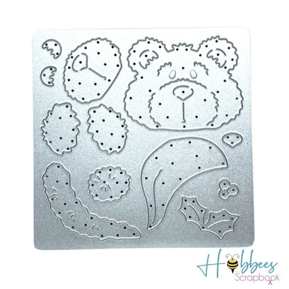 - 12 Suajes para armar osito navideño. La cabeza del osito mide 4.9 x 4.1 cm. Las patitas miden 2.5 x 1.7 cm.