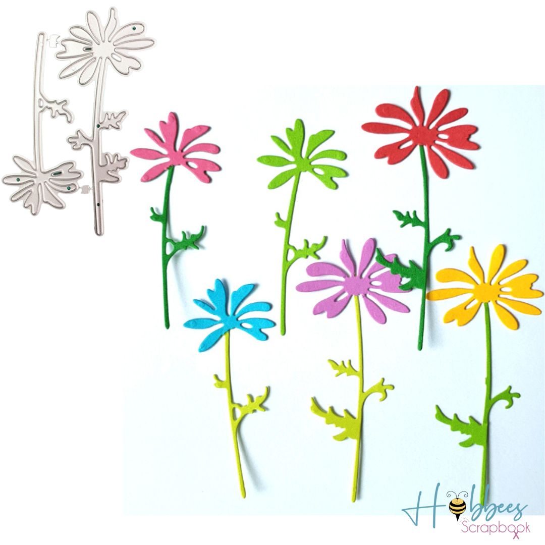 - 2 Suajes de Margaritas que miden 3.3 x 7.5 y 4.1 x 9.1 cm