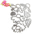 - 7 suajes que miden: 8 x 5.3, 7.7 x 4.7 cm, hojas 5.3 x 3.7cm, 4.8 x 3.3cm, centro flor 3 x 2 cm, flor de 3 petalos 6 x 7.5 cm