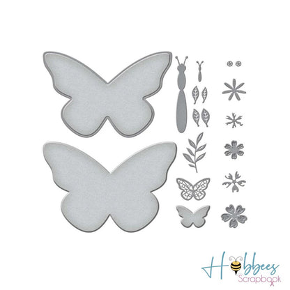 - 18 Suajes de Mariposas, flores, hojas y rama.
