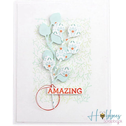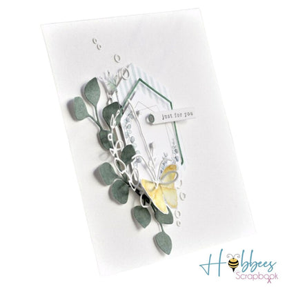 - 2 Suaje de rama de eucaipto que miden 3.6 x 9.9 y 3.9 x 9.8 cm.