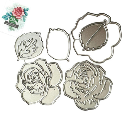 - 6 suajes que miden aproximadamente: contorno flor 5 x 5, 4.9 x 5.1, hoja 3.6 x 2.9, hoja 4 x 2.8