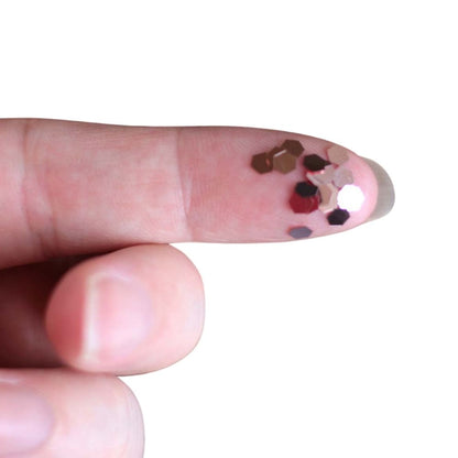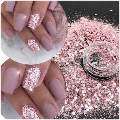 El paquete contiene:- 1 Botella de brillos de cristal gruesos color oro rosa que tiene 27 g.