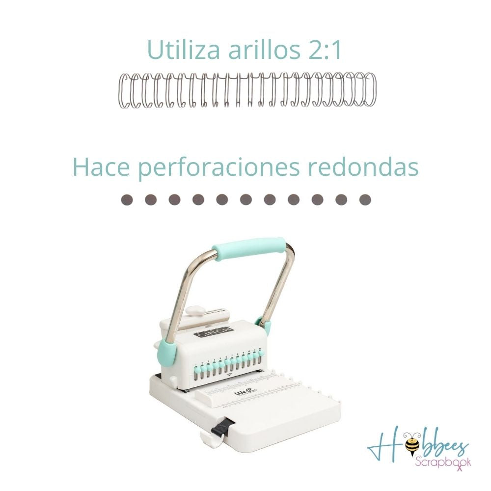 ¡Nuevo diseño en color turquesa! Máquina para perforar agujeros redondos y colocar arillos para engargolar de forma sencilla.