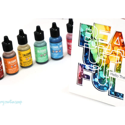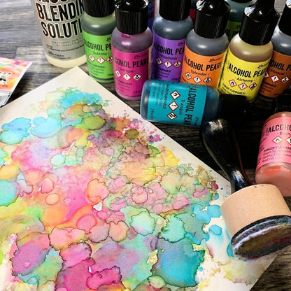 Tinta de alcohol transparente, libre de ácido y de secado rápido, especialmente formulada para crear un colorido efecto de piedra pulida o marmoleados.