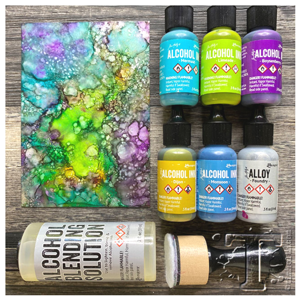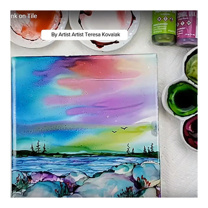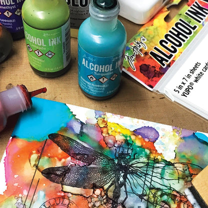 Tinta de alcohol transparente, libre de ácido y de secado rápido, especialmente formulada para crear un colorido efecto de piedra pulida o marmoleados.