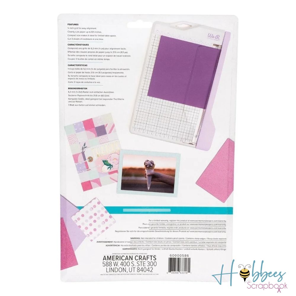 Esta mini guillotina está por encima del resto y ahora está disponible en un hermoso color lila. ¡Es tan precisa y sin esfuerzo! Un movimiento de su hoja de corte y siempre tendrás páginas perfectas y precisas. Es perfecta para tarjetería, agendas y planificadores y otros proyectos pequeños. Corta limpiamente hasta 3 hojas de papel (en torno a 160 gr) y de alto hasta 8.5 pulgadas (21.6 cm).